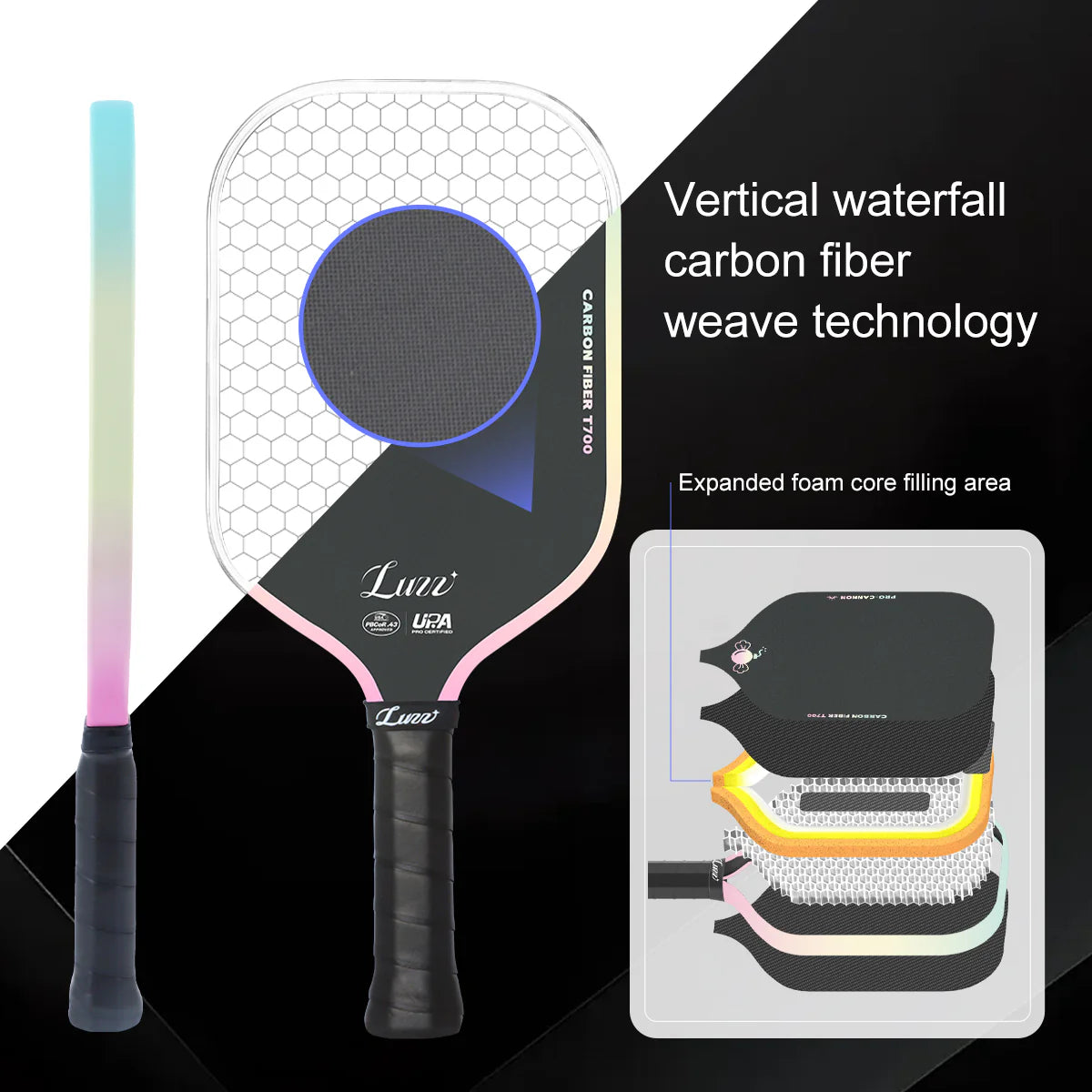 「キャンディキャノン」スペシャルエディションモデルのピックルボールパドルです。U字型カーボンファイバーマトリックス構造を内蔵したコアテクノロジーで、爆発的なパワー伝達と損失の少ないエネルギー伝導を実現。球速・反発力・スピン力に優れ、視覚的にも楽しいデザインが特徴です。USAP公認のパドルとして公式戦でも使用可能です。