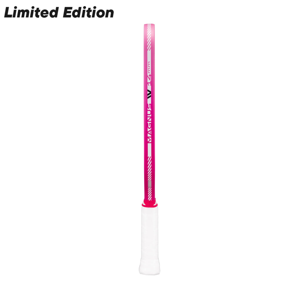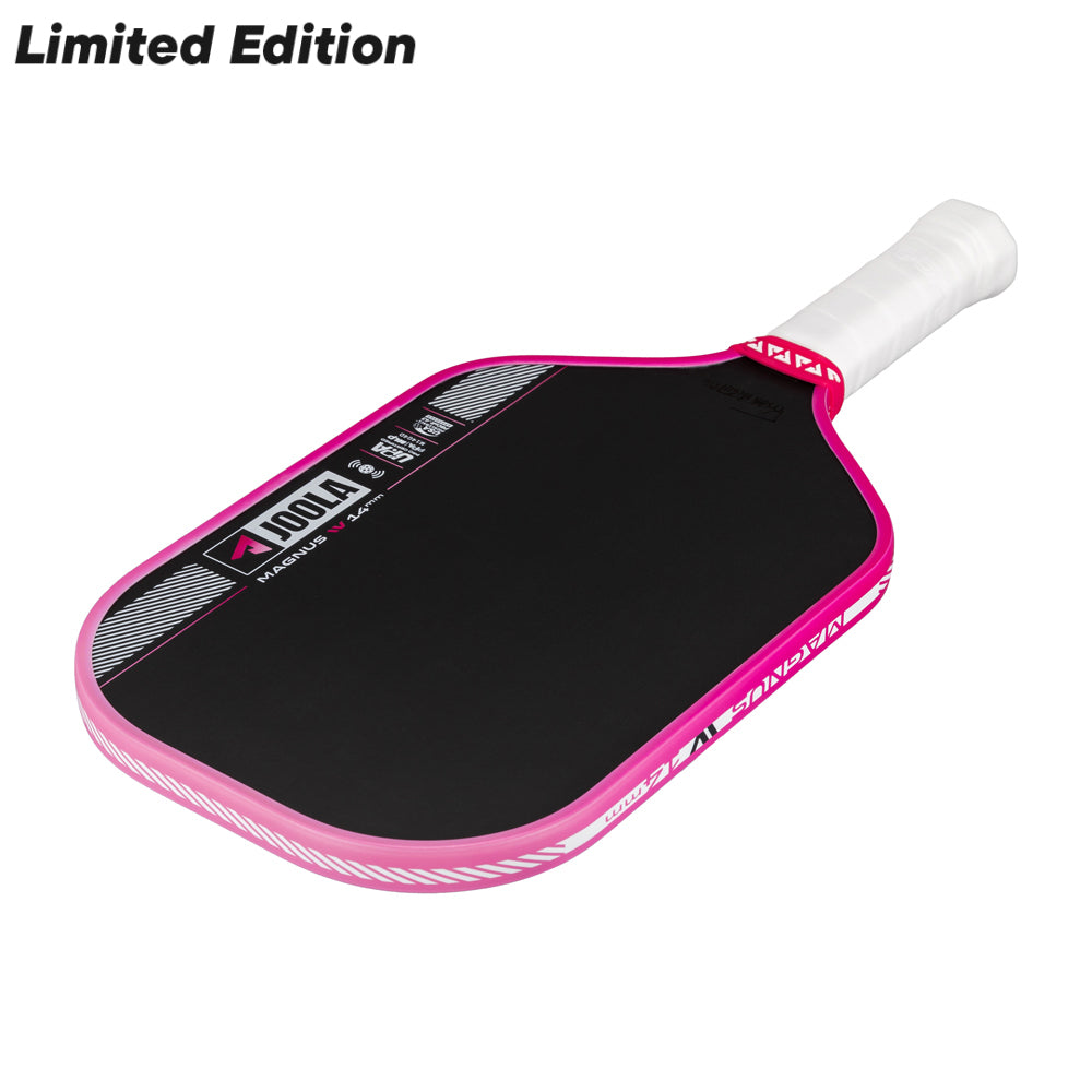 『Magnus Pro IV 14mm ピックルボールパドル』は、長めのパドル形状と短めのハンドルを組み合わせ、より強力なパワーと広いリーチを提供します。 特に片手バックハンドを多用するプレイヤーに理想的な設計です。